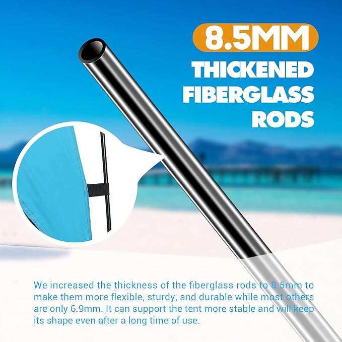 - 【Solid Structure】8.5mm Thickened Fiberglass Rods automatic bracket structure instant setup in seconds. Time-saving reduces effort. We increased the thickness of the fiberglass rods to 8.5mm to make them more flexible, sturdy, and durable. It can support the tent more stable and will keep its shape even after a long time of use