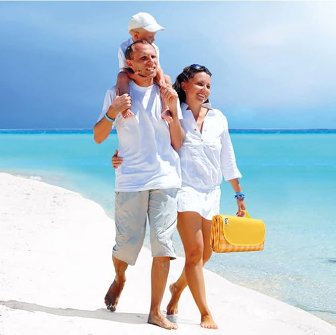 RUIBOLU Beach Blanket Large Picnic Blankets, 80x60in Sandproof Beach Mat for 2-4 Adults Waterproof Quick Drying Outdoor Picnic Mat for Travel Camping Hiking Festival Park Lawn (Yellow Plaids)