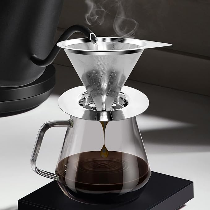 - 【EASY TO USE】Simply preheat the pour over coffee filter with hot water and rinse well, add the coffee grounds, slowly pour the hot water in a spiral circle, wait for the pour over filter to drip out, remove the coffee dripper when finished , then get ready to enjoy your drink.
