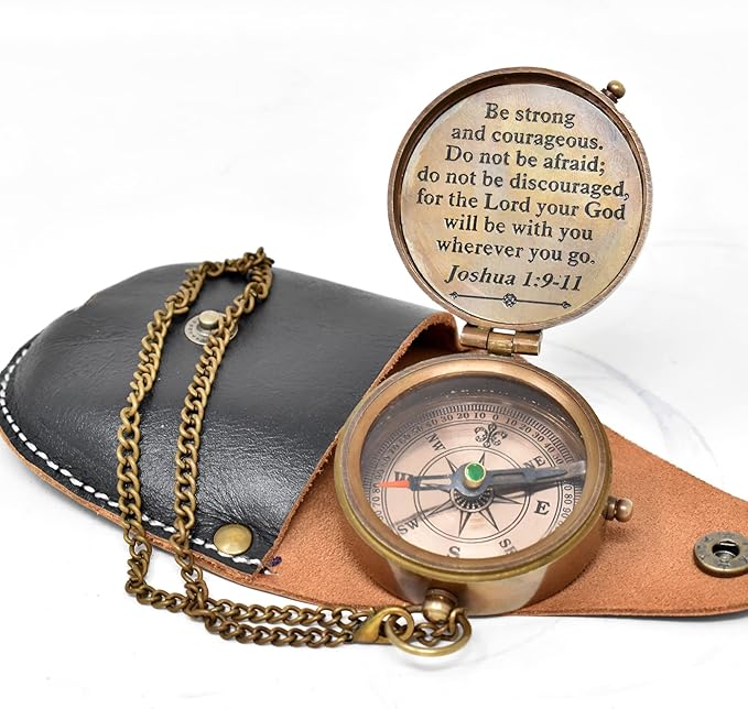 - The scripture Joshua 1:9 is engraved inner lid of the compass and GOD Cross engraved on the top side of the compass