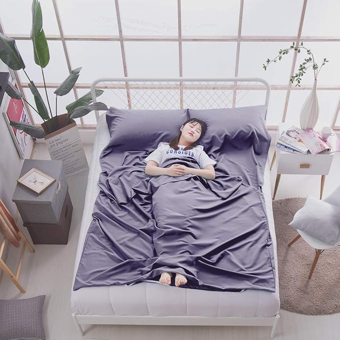- HUMANIZED DESIGN: The lightweight sleeping travel sheet has two buckles on the top of the sheet,opening on one or two side to make it easy for you to get into. It has an invisible zipper at the bottom for easy ventilation and free movement of your feet.You can open the bottom zipper if you feel hot sleeping in travel sheets.