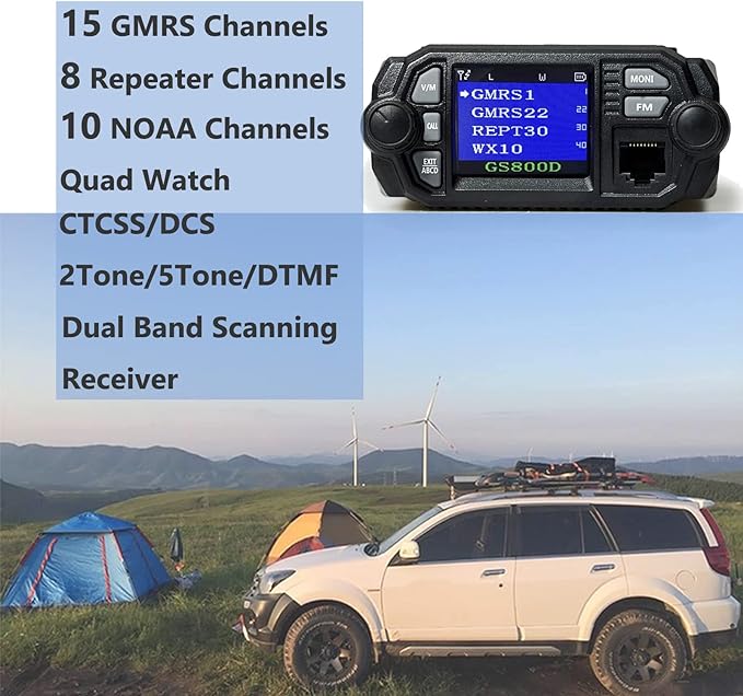 - 1.|GS800D|This GMRS Mobile Radio with 8 repeater channels, 15 high power GMRS channels 10 NOAA weather channels provide clear and crisp communication, compatible with all GMRS and FRS radios. FCC ID: 2AV62KT8900D.