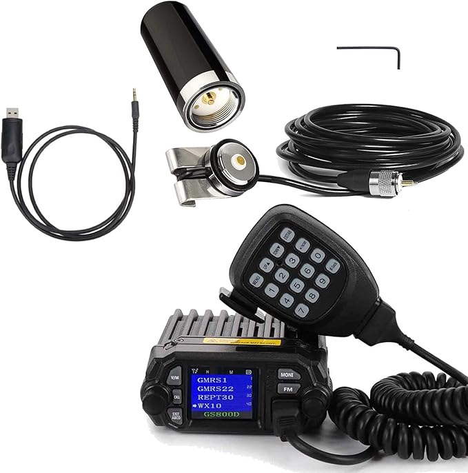 - Included Components : 1*GS800D Mobile Radio, 1*Microphone, 1*DC Cable, 1*Mounting Brackets, 1*Screws & Mounting Hardware, 1*Programming Cable, 1*3.5 Inch NMO Antenna, 1*16.4 ft RG58 Coax Cable with Clamp,1*User’s Manual. 1*GS800D Mobile Radio, 1*Microphone, 1*DC Cable, 1*Mounting Brackets, 1*Screws & Mounting Hardware, 1*Programming Cable, 1*3.5 Inch NMO Antenna, 1*16.4 ft RG58 Coax Cable with Clamp,1*User’s Manual.