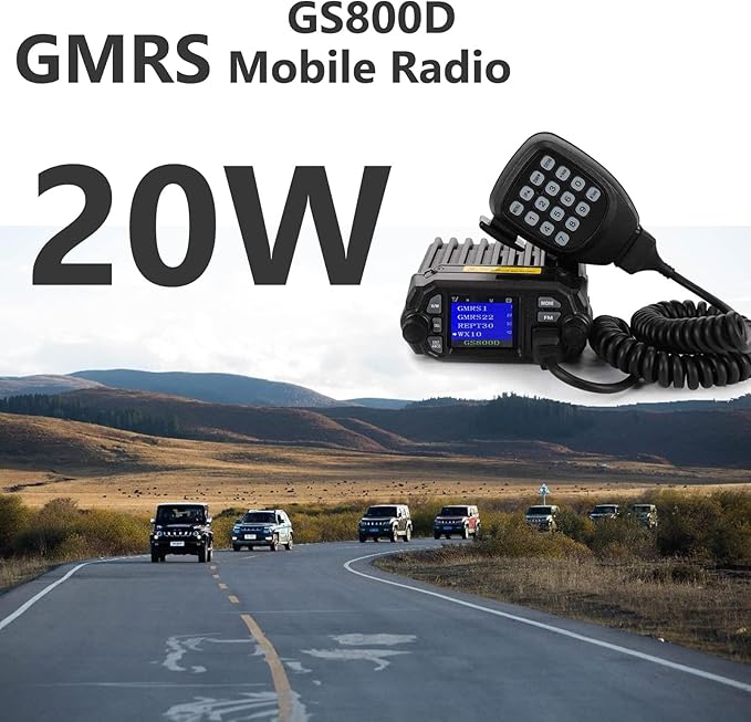 GMRS Mobile Radio Mini Size 20 Watt Long Range GMRS Repeater Capable NOAA Weather Alert Two-Way Radio GS800D
