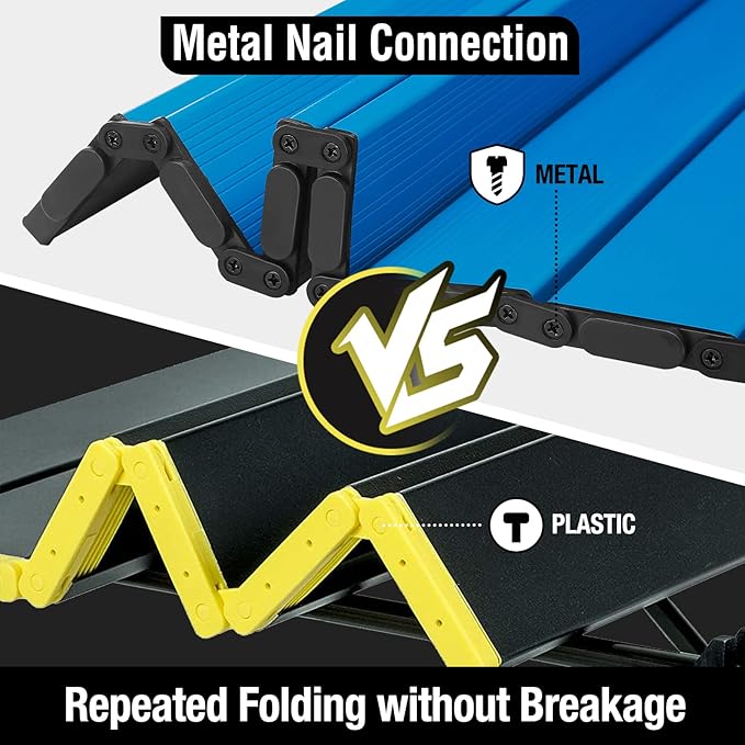 - Hinged Connection Upgrade: VILLEY outdoor table has a unique metal screw design that works with hinges to connect each panel of the table, unlike other similar foldable tables that are connected with bungee cords or plastic nails, heavy-duty metal nail-attached hinges make the snack table more stable, allow it to last for many years