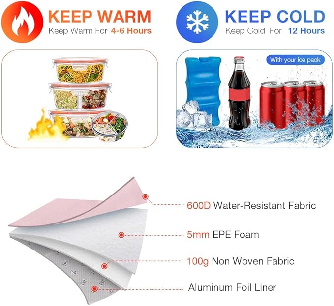 - Wide Open Design: Top of the insulated lunch bag can be opened up to 10.2"L x 6.5"W by dual zipper closure, that means your lunch container can be put into the bag and taken out of the bag horizontally.