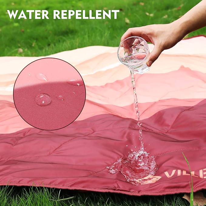 VILLEY Picnic Blanket, 3-Layer Camping Blanket 52"x75", Machine Washable, Water Repellent and Sandproof, Packable and Portable for Camping, Travel, Park, Beach and Indoor Use