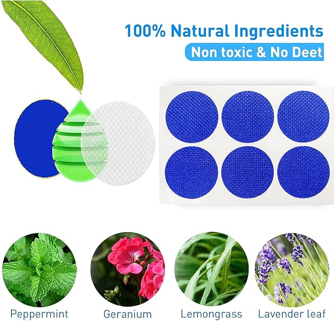 - ★【Natural Plant Based Ingredients】Our patch are made of citronella, Lemongrass and Geraniol essential oils. Natural plant essential oils can Effectively repel, Long Lasting Protection