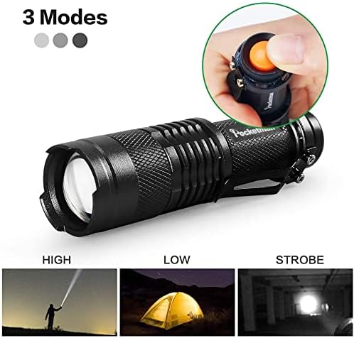 MODOAO 3 Modes LED Flashlight Torch Tactical Lamp Mini Light for Camping Hiking Emergency (Black)