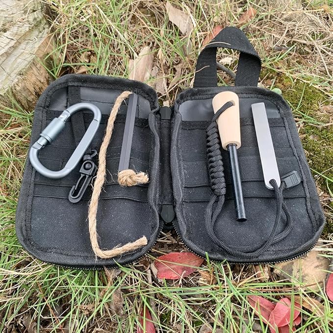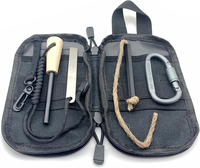 - EASY TO CARRY: You don't have to worry about losing these fire starter survival tools, because besides the fire steel and hemp tinder, you will also get a strong and durable multifunctional bag and a large aluminum alloy hook. You can put fire steel, hemp tinder or other tools you need into the bag.