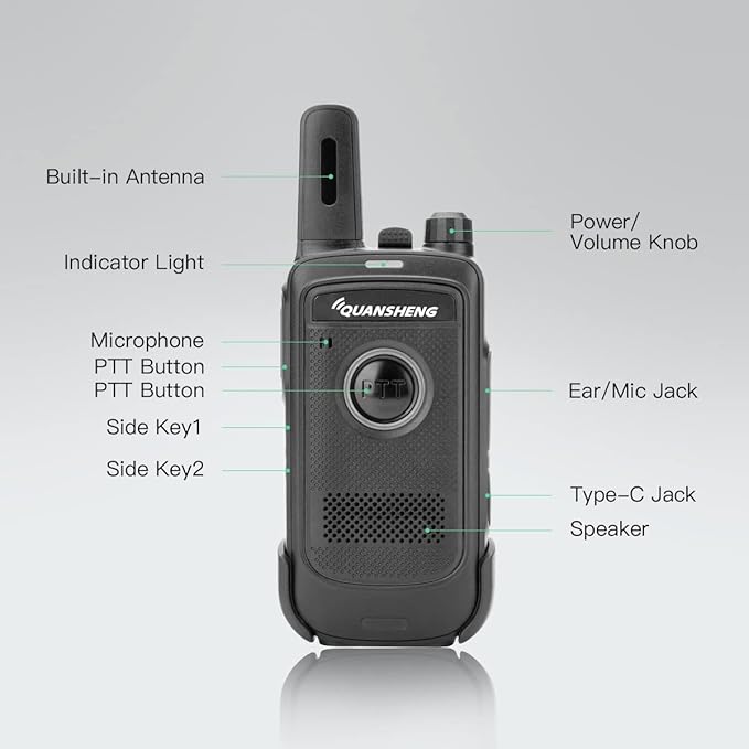 - Double PTT (Push-to-Talk): It`s with one traditional PTT on the left side and another PTT on the front panel, obvious and easy to use even for two-way radio beginners.