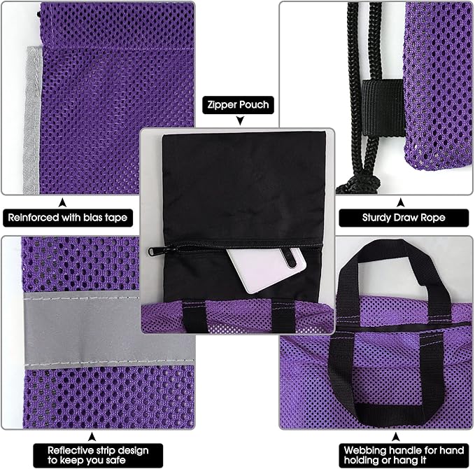 • Inner Zipper Pocket & Reflective Strip: Our mesh drawstring bag has a zipper pocket. The pocket (6.7'' x 7") of our drawstring backpack can put your value items, like phones, keys, wallets, etc, and add the utility rate of space. Our string backpack bag extra adds a reflective strip, which enhances the high visibility in dark or dusk. Greatly reduce your chance of being hit.