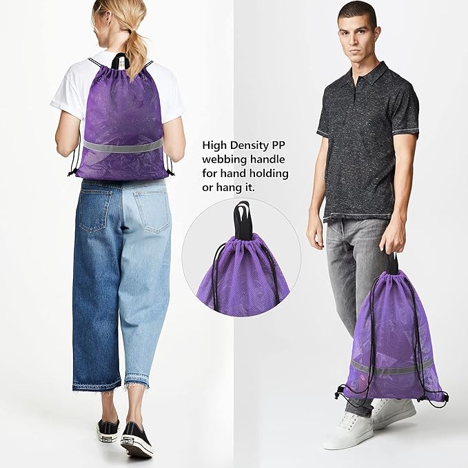 • Machine Washable & Two PP Webbing Handles & Collapsible: Large mesh drawstring backpack is machine washable and can dry quickly. Then our sports bag will come entirely clean and save your time. Two handles of our gym drawstring bags adopt high density PP webbing, suitable for hand holding or hang it. Our string backpack bag is easy to fold, without taking up much space. It's a perfect mesh gear backpack for any indoor or outdoor activities.