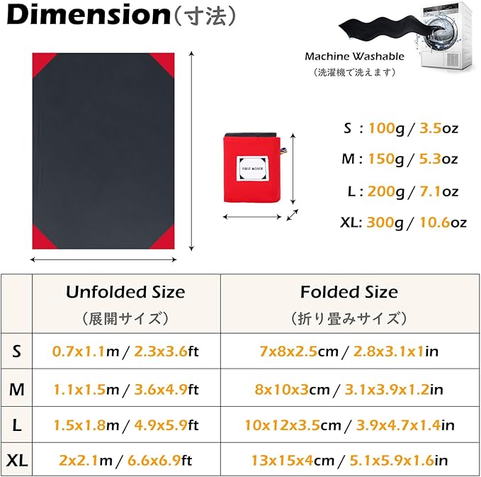 - ✅ SIZE - M mat is 59 x 43 inches and folded in 4 x 3 x 1 inches; L mat is 71 x 59 inches and folded in 5 x 4 x 1.4 inches, weights only 0.33 lbs. The waterproof outdoor blanket has corner pockets you can fill up with sand or stones to keep it to the ground