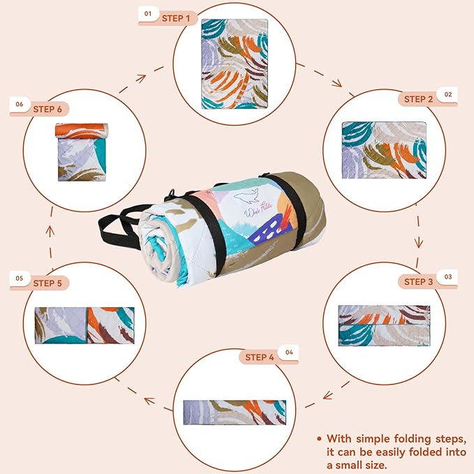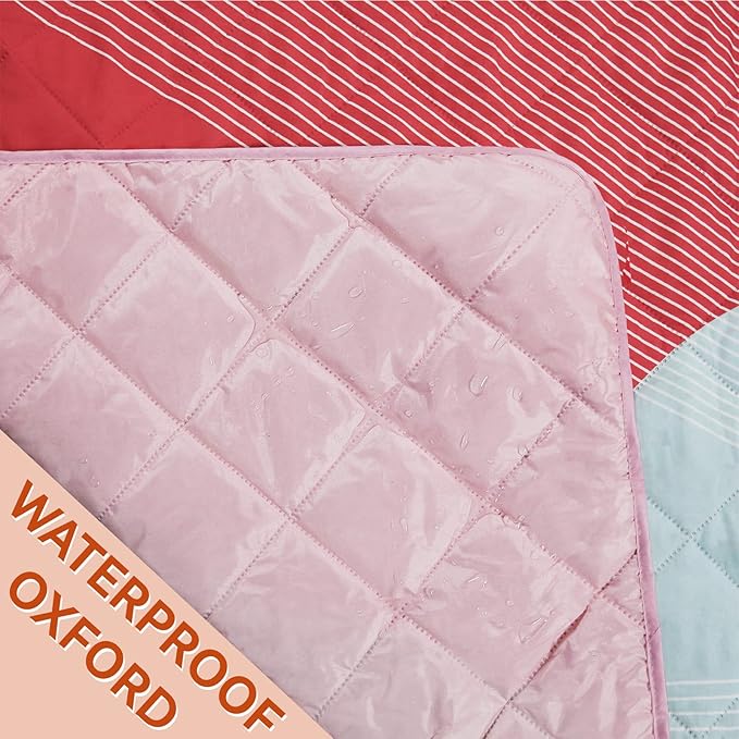 - Waterproof Design: This picnic blanket features a 210D oxford waterproof backing that keeps you dry on damp grass or sandy beaches. The sand-resistant surface ensures a clean and comfortable experience, perfect for outdoor adventures