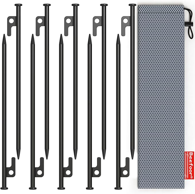 - ▶MULTI-USE: Tent stakes are suitable for nailing tents, canopies dog leash, tarps, and etc. to the ground. Perfect for outdoors camping and backpacking. Long and large tent stakes make sure your camping trip safe in the tents.