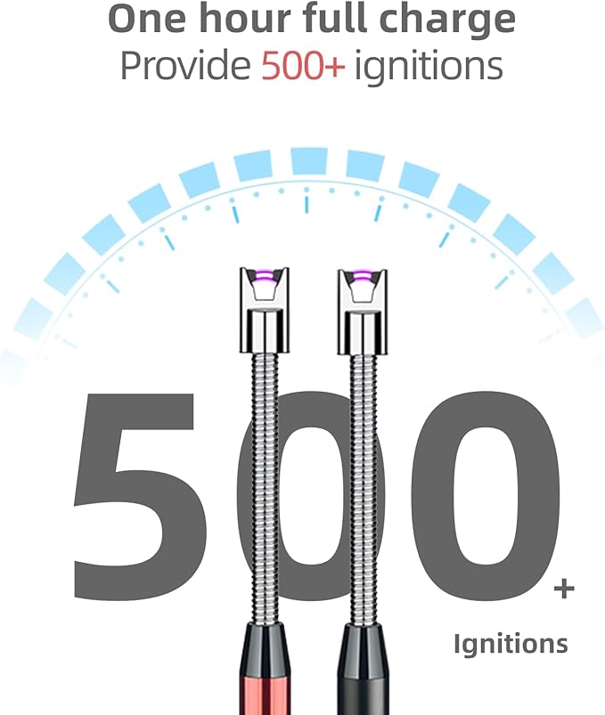 - 【USB Charging】:The arc lighter is equipped with USB charging,type-c charging interface,arc lighter can be charged directly from the power source or using a power bank,computer,etc,candle lighter can be used more than 500 times in per charge.The electric candle lighter with LED power indicator light,it can remind you to charge in time.