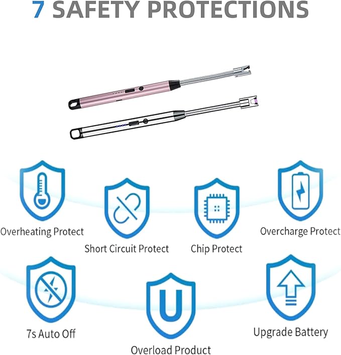 - 【Child Protection】:The arc lighter has a child protection function.You need to turn on the power switch before you can ignite,The candle Lighter will automatically cut off power for 8 seconds.The usb lighter with overcharge protection,overvoltage protection,and temperature protection,it can extend battery life.