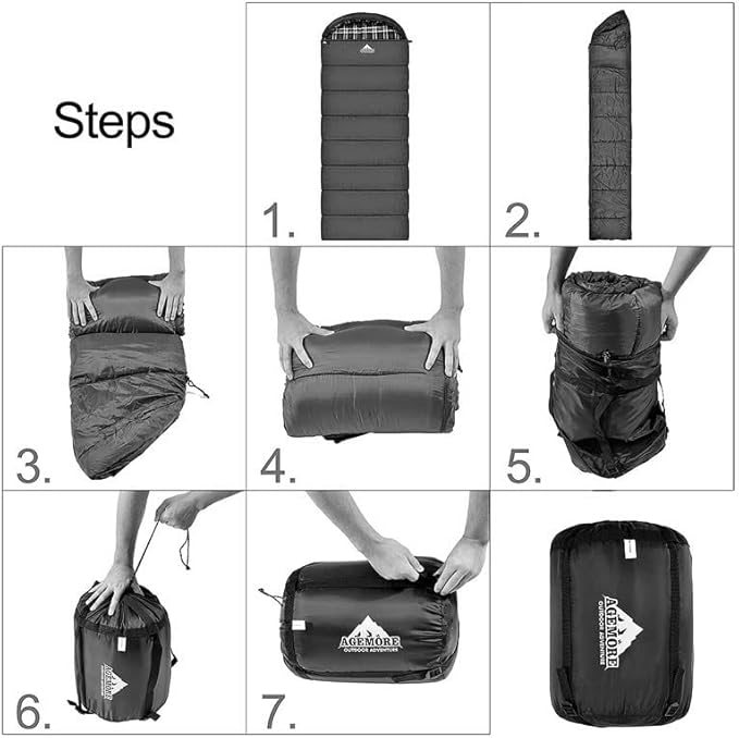 - 【COMFORTABLE AND SKIN-FRIENDLY】 Made by Cotton flannel lining, Agemore cotton flannel sleeping bag is quite soft, comfortable and skin-friendly. Outer 210T Polyester rip stop Fabrics, durable and water resistant, hollow cotton filling offers enough warmth. It can help you to get rid of a tiring day of hiking, camping, backpacking and travel. The Hood design offer extra protection for the head. Great for indoor and outdoor activities.