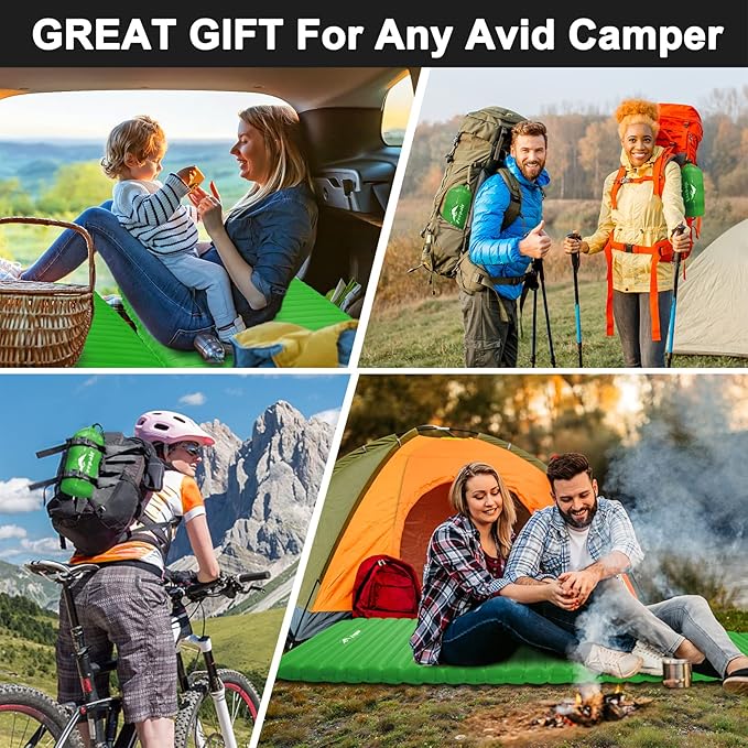 - Perfect Present: What could make a friend who loves the great outdoors better than giving the gift of adventure like this. Absolutely the first choice for outdoor Companion. You can use it for all kinds of outdoor activities, from hiking, backpacking to picnics and concerts. Its compact size and lightweight design make it easy to carry wherever you go. Durable construction stands up to any adventure. Share the inflatable mattress with your family while camping or traveling, enjoy happy time!