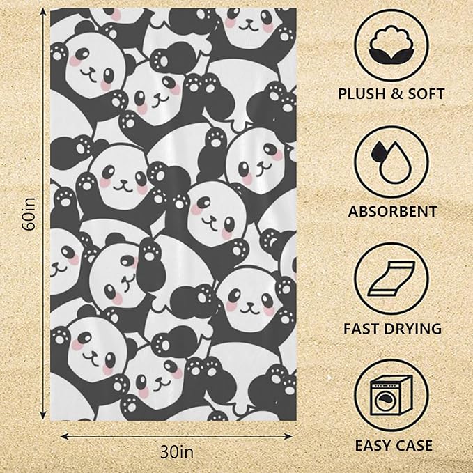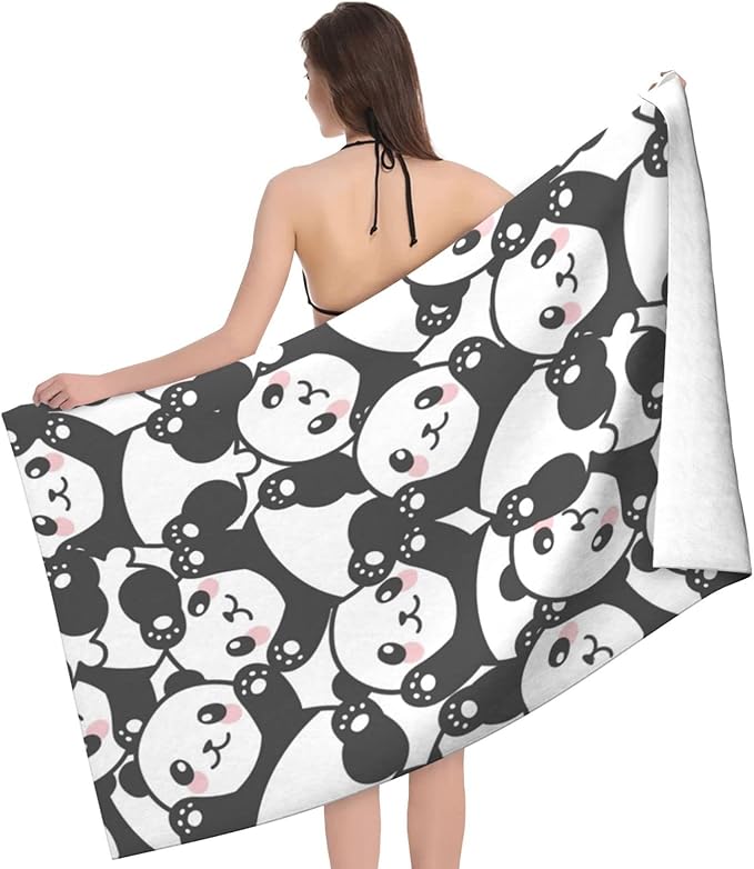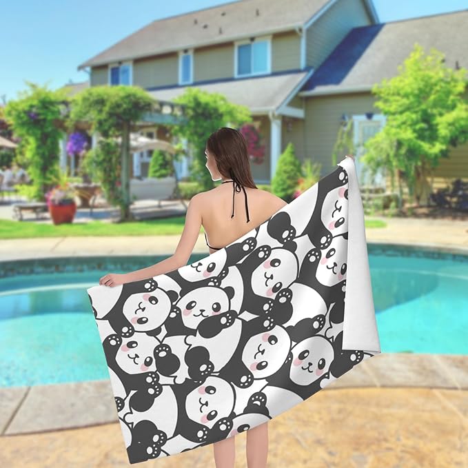 Microfiber Beach Towel Cute Baby Panda Oversized Large Sand Free & Quick Dry Lightweight Towel for Adults Womens Mens Travel Camping Gym Pool Swim