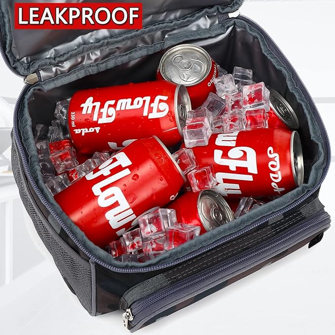 FlowFly Double Layer Cooler Insulated Lunch Bag Adult Lunch Box Large Tote Bag for Men, Women, With Adjustable Strap,Front Pocket and Dual Large Mesh Side Pockets