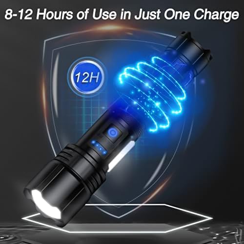 - 【3 Hours Charge | 12 Hours of Brightness】Experience up to 12 hours of brightness with just 3 hours charging. The setting mode you choose determines this multifunctional rechargeable flashlight runtime life. With colossal capacity, the brightest flashlight can function for 12 hours, which can provide you with long hours of light to prevent unexpected situations.