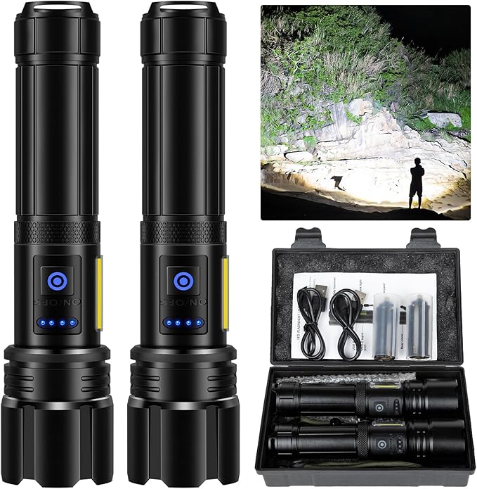 Rechargeable Flashlights High Lumens, Led Flashlight 990000 Lumens Bright Flash Light with 7 Modes, Flashlights for Camping, Home, IPX7 Waterproof (2 Pack)