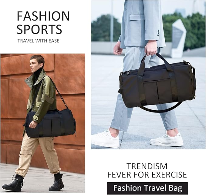 ZGWJ Sports Gym Bag with Wet Pocket & Shoes Compartment, Waterproof Shoulder Weekender Bag for Women and Men Swim Sports Travel Gym Bag Lightweight and easy Carry on Black