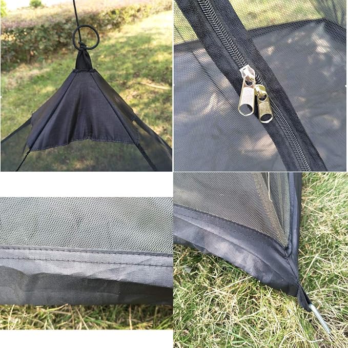 • Advantage: It can be hung to cover a camp bed, it can be put inside a big tent to keep the doors open or it can just be strung up to a tree to let you sleep under the stars but free from insect bites. Whichever way you use the net, it gives more freedom to move than ordinary tents or Shelter bags.