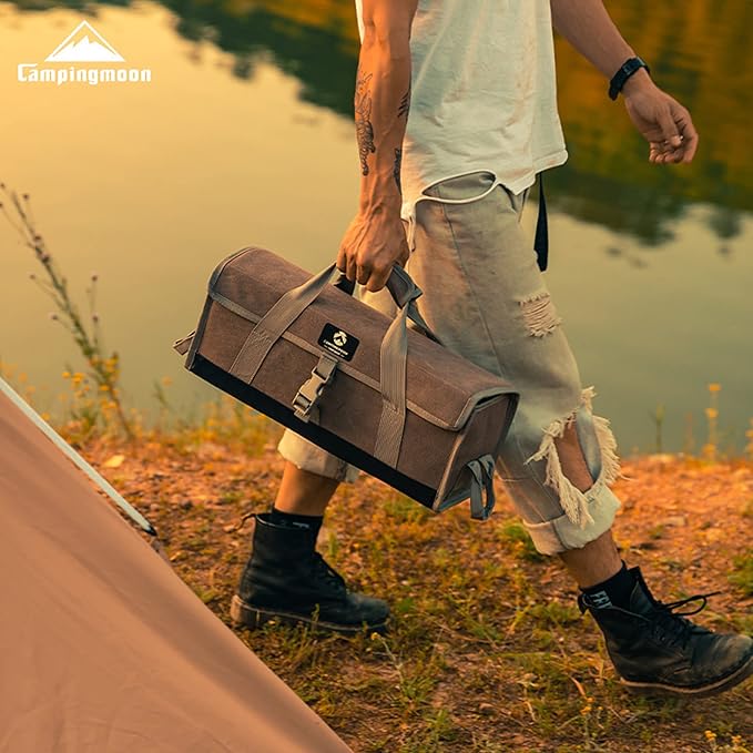 CAMPINGMOON Bottom Waterproof Outdoor Camping Tent Stakes Hammer Multi-Container Storage Box Bag (Canvas, M size(17.7-inch length, B-155C))