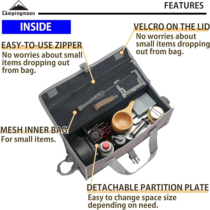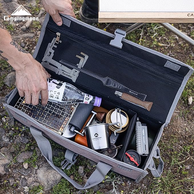 - This is a compact size container type camping gear storage case. The inside partition plate is removable and can be adjusted in your need.
