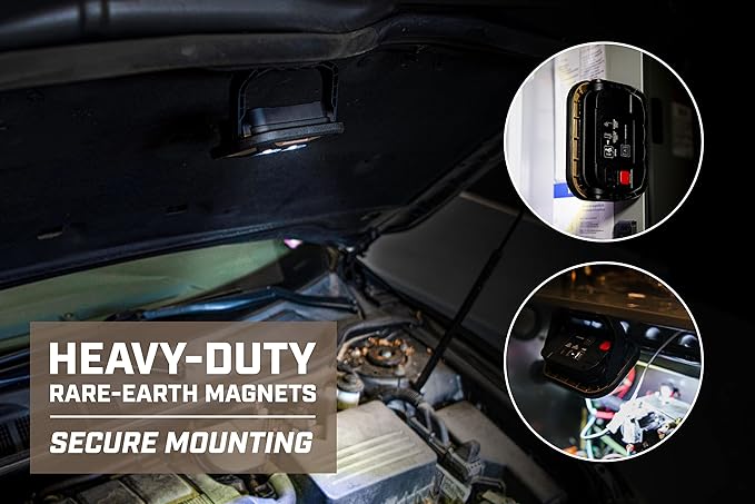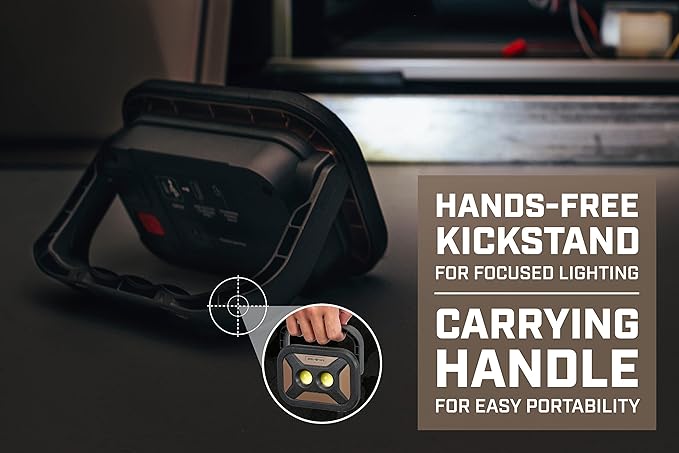 - Portable work light emits 800 lumens to easily illuminate dim worksites