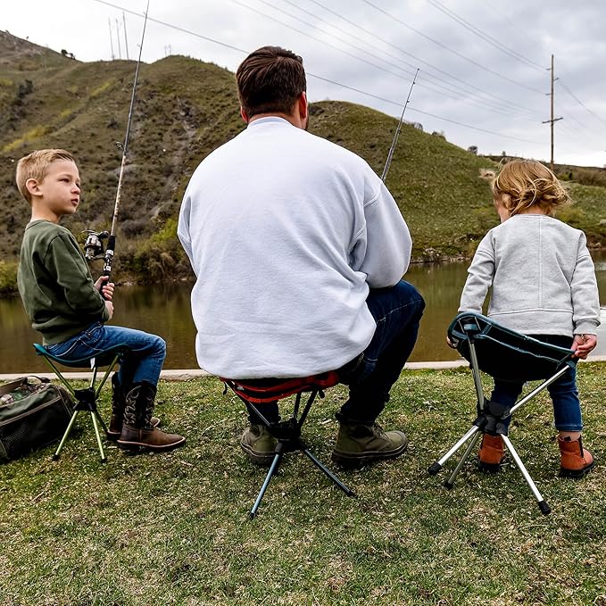 - 360° ROTATING SWIVEL ACTION – The Compass 360° Stool features a full 360-degree swivel, allowing you to easily turn and adjust in any direction. Whether you're relaxing at camp or surveying the landscape, this stool offers unmatched flexibility and comfort.