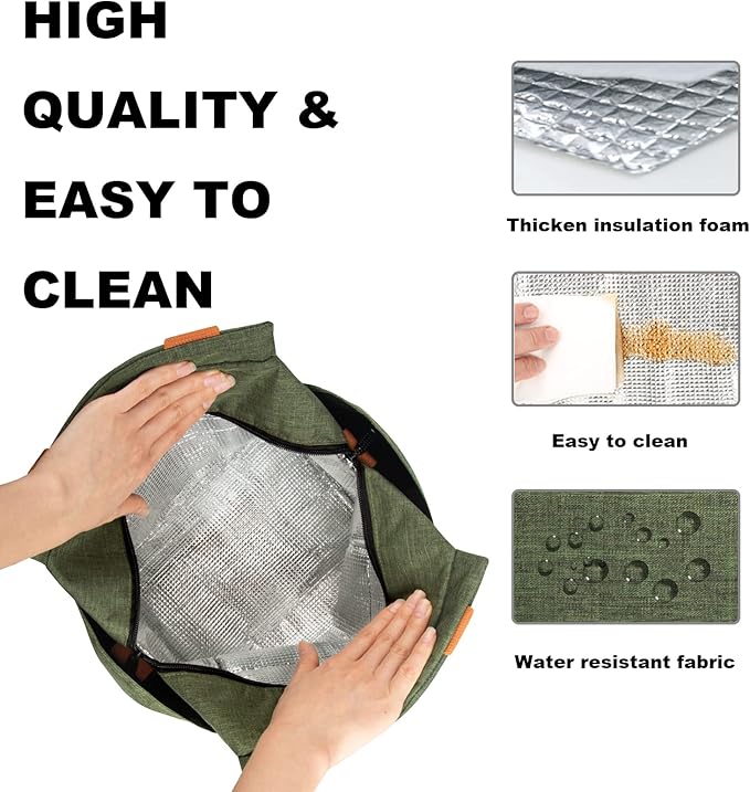 - ❤KEEP FRESH & WARM: This insulated lunch bag is made of water-resistant leakproof oxford cloth, easy clean food safe aluminum foil inner lining, and padded with thicken EPE foam will keep your food cold or thermal for 4-6 hours. Tips: Putting ice packs into the bag could keep cold for longer time.