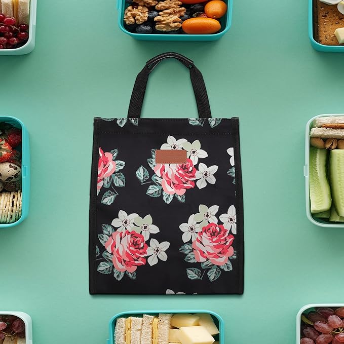 Lunch Bags for Women Insulated Reusable Lunch Tote with Internal Pocket, Lunch Tote bag for Work (Flower)