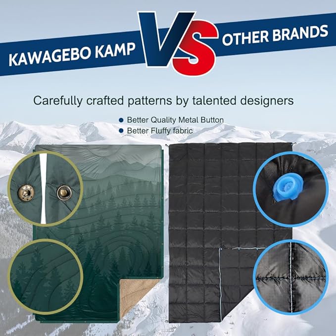 - 【Ultra Soft Sherpa Fleece】 - Made with thick sherpa fleece and quality materials ripstop polyester. The KawaGebo Kamp camping sherpa blanket is designed to keep you totally warm in just about any indoor or outdoor environment. Soft, warm and cozy enough, these outdoor camping blankets will provides comfort for a better sleep in rain, snow and cold weather.
