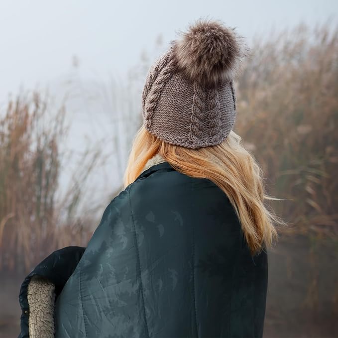 Outdoor Camping Blanket with Sherpa Lining, Extra Warm Thick Camp Blankets & Puffy Ultralight Soft Poncho DWR Camping Quilt for Cold Weather, Adventure,Sleeping,Backpacking 78"x 56"