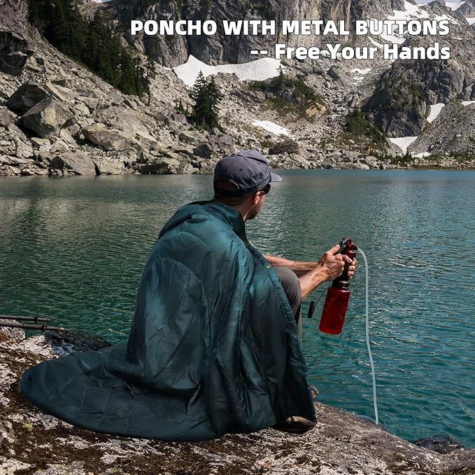 - 【Multipurpose Blanket 】 - As a multi-purpose camping packable blanket. In addition to being used as a warm puffy blanket for cold weather, hammock blanket or sleeping bag blanket, the buttons on both sides combine to be used as a waterproof poncho , free your hands.
