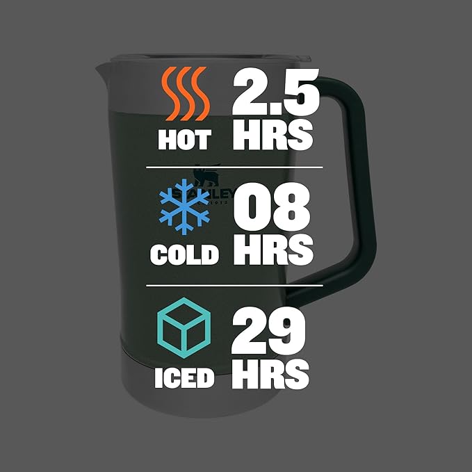 Stanley Stay-Chill Pitcher 64 oz | Cold Water, Beer, and Drink Pitcher with Lid | Large Capacity Durable Beverage Container with Handle | Insulated Stainless Steel | BPA-Free