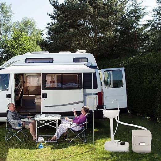 Outvita Portable Sink and Toilet Combo, 5 Gallon Hand Washing Station & 5.3 Gallon Flushing Toilet, Detachable Wastewater Recycled Perfect for Outdoor Camping RV Travel Boat
