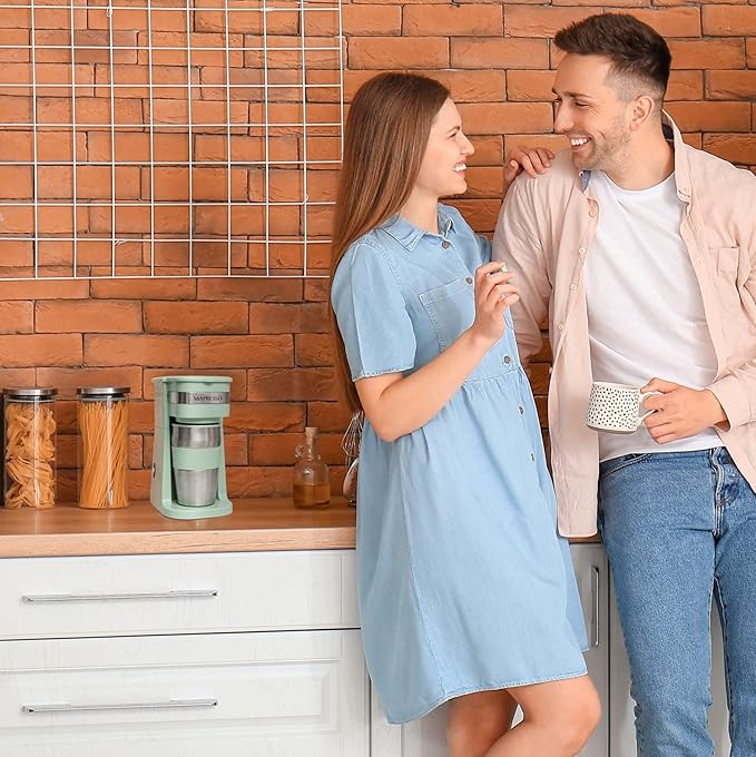 Mixpresso Personal Single Serve Coffee Maker & 14oz Travel Mug, Drip Coffee Brewer & Tumbler, Auto Shut Off & Reusable Filter, Green Coffee Maker Small, Compatible with Coffee Grounds