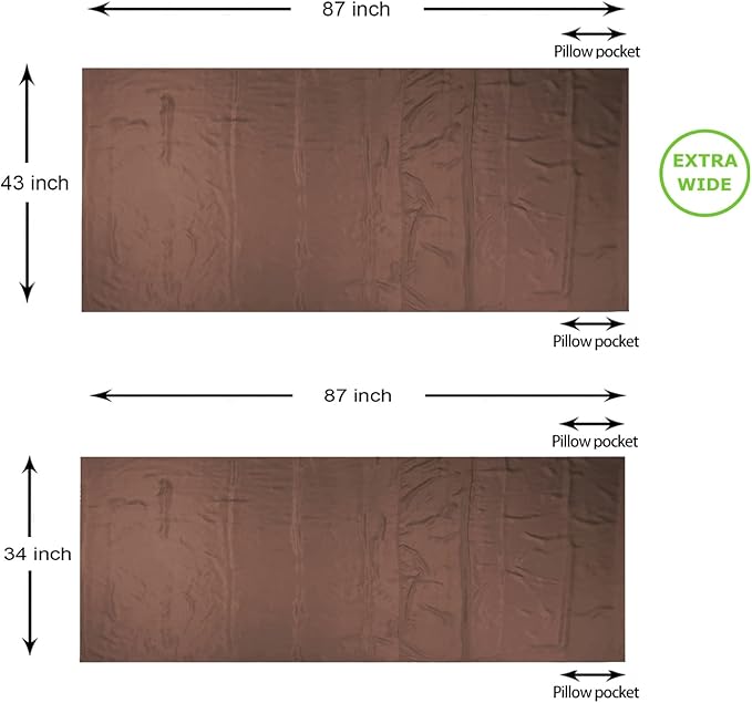 - EXTRA WIDE AND SUPER LIGHTWEIGHT: Two sizes for option: 87”x43” is an extra wide size, which is about 9” wider than a normal single liner. There’s generous space for the tall people to move freely. It weighs only 6.3oz. (180g); The 87"x34" liner weights 5oz. (140g), which is a comfortable size for one person. The liner is compacted in a tiny ripstop nylon stuff bag. With an attached hook on the carry case, you can link it up with the liner after taking the liner out, avoid losing the stuff bag.