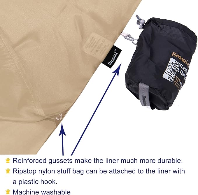 - Silk liner keeps your sleeping bag clean and It’s also ideal for hotels, hostels, travel, camping and sleeping cars. Question again: Is it real silk??? BROWINT: Yes, it is!