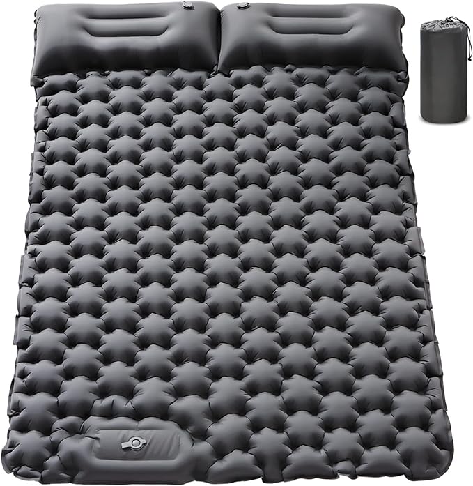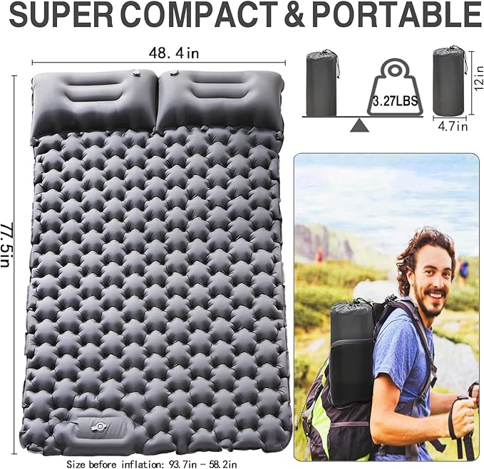 Camping Sleeping Pad,Camping Mattress 2 Person with Pillow Built-in Pump,Portable Sleeping Bed Compact for Camping Hiking Backpacking Outdoor(Grey-Full)