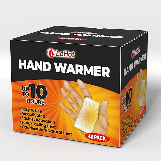 - ✔️【SAFE AND safe for use】 – Lehot hot hands hand warmers come in a pack of 40 individual units, each independently packaged for flexible use to avoid waste. Designed for safety, they offer an ideal alternative to traditional heat sources like fires or heated blankets, emitting no harmful fumes or sparks, making them safe for use around children and pets.