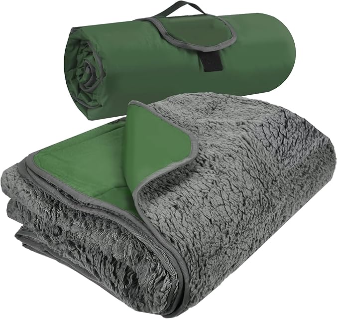 - PACKABLE & PORTABLE- It’s also easily foldable and packable, this compact waterproof throw blanket can be simply rolled up into a handled roll secured by a heavy-duty fastener, which is super easy to store.