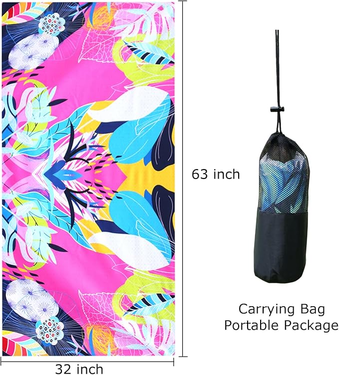 - 【Super Absorbent & Quick Dry】The large camping towel has an unfolded size of 63"x32" (about 160x80cm), can absorb up to 7 times its weight. Drying 3 times faster than cotton. That's why it works perfectly as beach & travel towel and why it dries off so fast. Do not hesitate to get such a perfect beach towel !