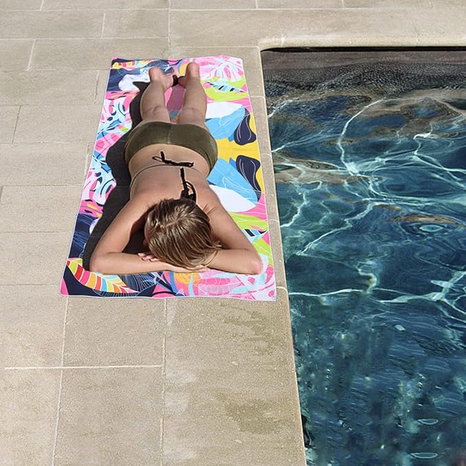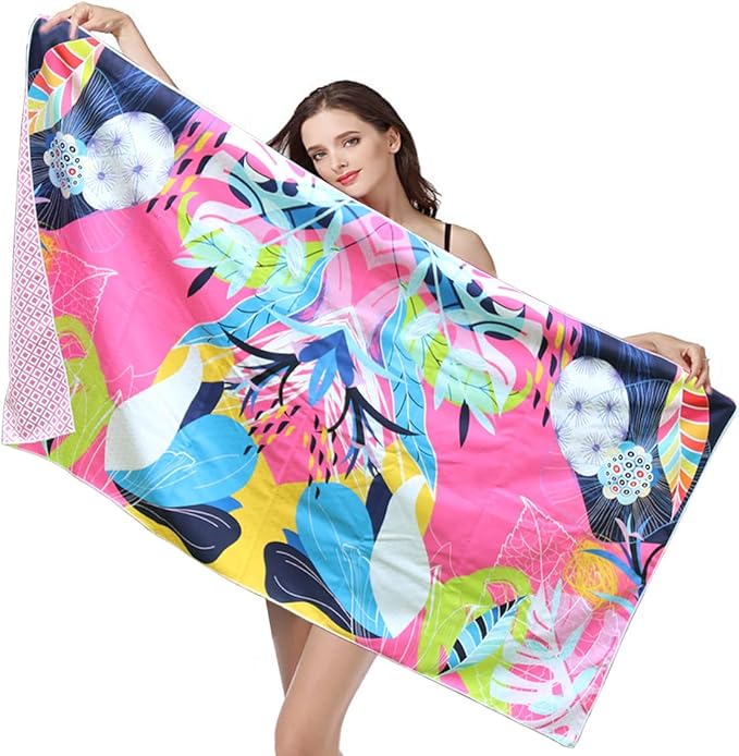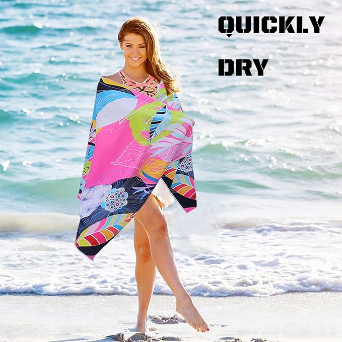 - 【Sand Free】The beach towel can be directly covered on the sand and grass, you can shake off the sand quickly due to the smoother surface. The microfiber beach towel is also soft and comfortable to touch, ultra-thin, density is super high, You won't feel cold if put on body as the towel thick surface has a very significant wind-proof effect.