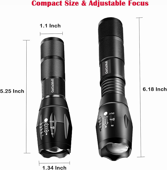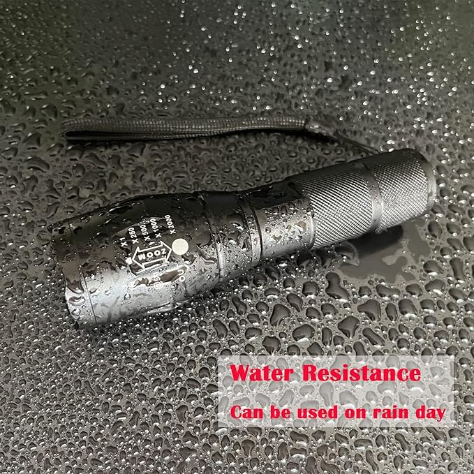 - FLASHLIGHT FEATURES: Zoomable function; Made of aircraft-grade aluminum; Water resistance for outdoor activities; Tactical Support; Simple on/off Switch